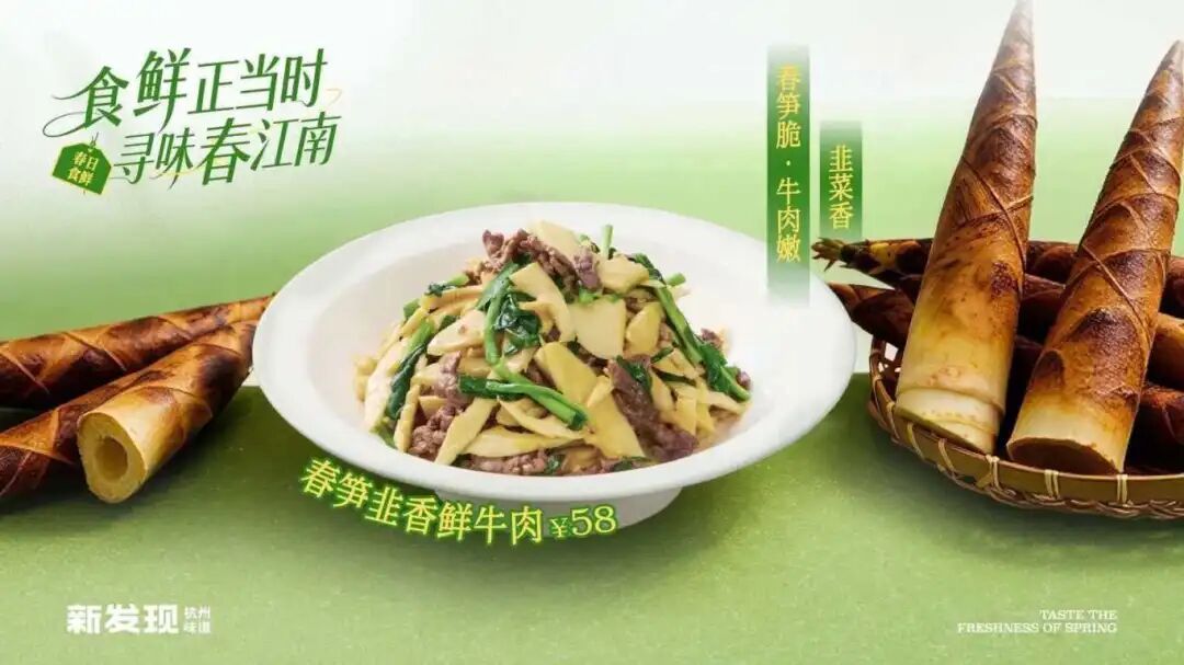 这里的后厨团队深谙“不时不食”的饮食哲学,将目光锁定在江南水乡刚刚冒头的春笋、鲜嫩的牛肉与时蔬上,匠心打造出一系列春季时令佳肴,这些质朴的家常菜,将田野间的清新滋味悉数呈现。走进新发现,仿佛把整个烟雨江南都搬上了餐桌。