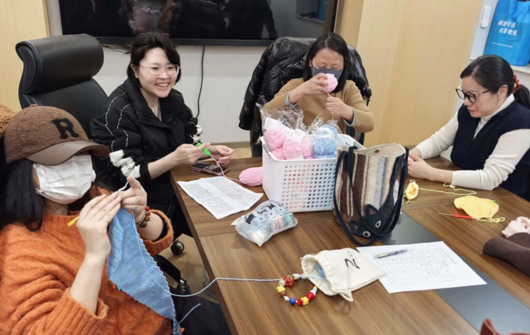 课堂上,从基础针法到复杂图案,丁阿姨手把手耐心示范。年轻学员们从一开始的手忙脚乱,慢慢能独立织出可爱的小玩偶、精致的小杯垫,每一件作品都藏着大家的专注与巧思。在毛线的轻柔交织里,大家不仅学会了一门手艺,更在忙碌的都市生活中,找到了一方能让心安静下来的小天地。课程结束时,大家捧着自己的作品互相欣赏,脸上的自豪与满足,让这间小活动室里,满是暖暖的人情味。
