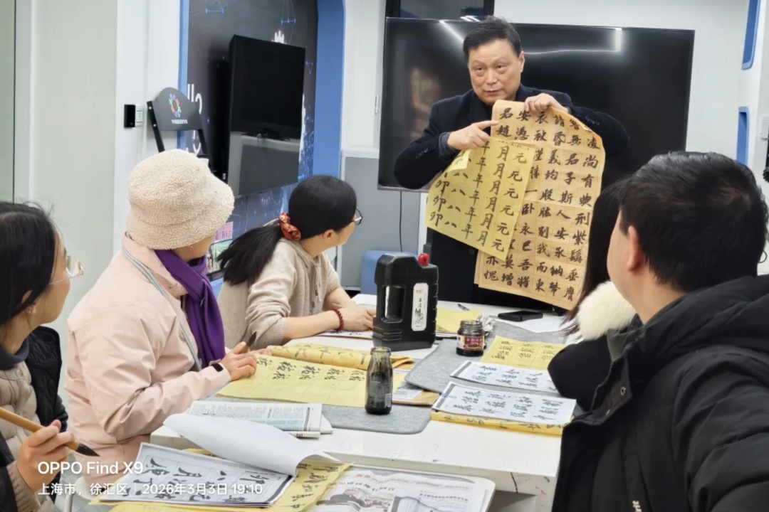 从苏轼书法的丰腴端庄,到米芾笔墨的酣畅淋漓,彭捷带着大家,在横竖撇捺间探寻书法的魅力。“握笔要稳,运笔要活。”他穿梭在课桌间,纠正学员的握笔、运笔姿势。那些起初握笔都会颤抖的年轻人,渐渐能在宣纸上,写出有模有样的字迹。不少居民都说,在一撇一捺的起落间,不仅感受到了书法的独特韵味,更缓解了日常的生活压力,心里也变得平和。墨香萦绕的课堂里,老中青居民围坐在一起,以笔为友,在传统文化的滋养中,让匆匆的时光慢下来,多了一份雅致与从容。
