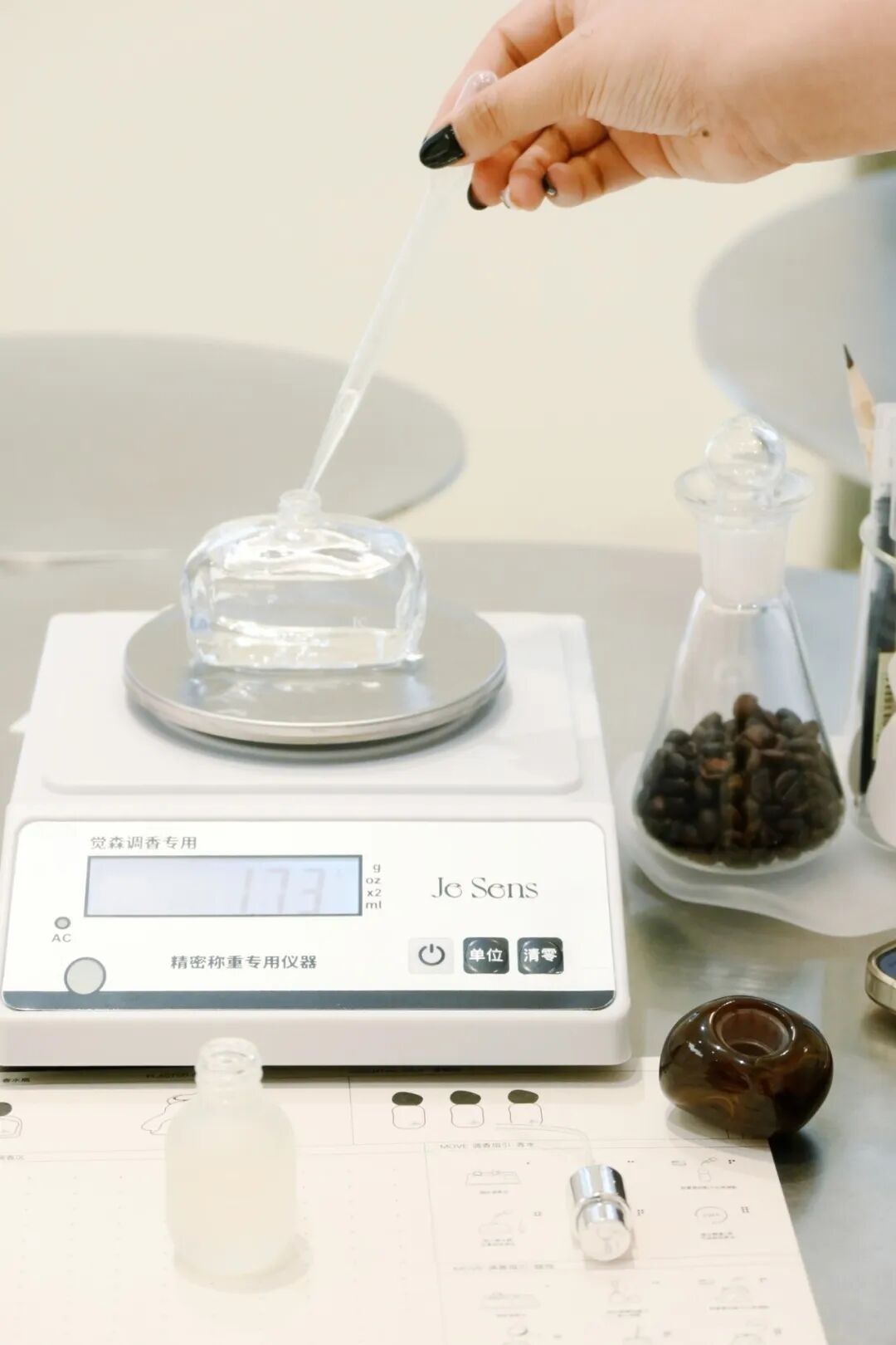 此番探店,更添一份惊喜,恰逢小红书博主“卡老师在上海”在现场体验香水定制。挑选好心仪的精油后,卡老师坐在定制区的工作台前,指尖轻捏滴灌,小心翼翼地控制着剂量,时不时凑到鼻尖轻嗅:“调香真的很有趣,每一滴都能改变香气的层次,Je Sens最打动我的,就是这种自由感,不用被固定香型束缚,能调出真正属于自己的味道。”