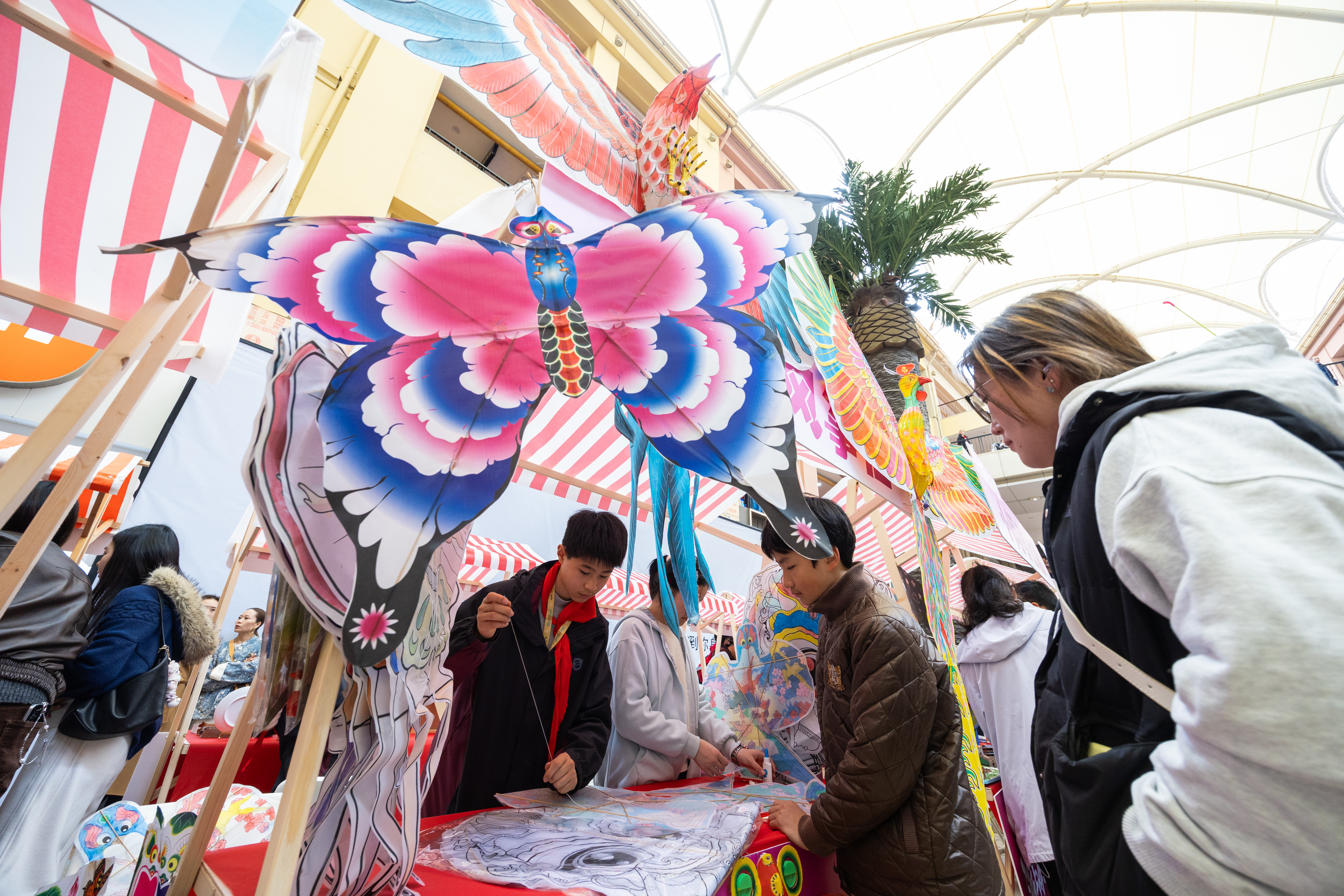 下午2时,活动正式开始。开元地中海广场中庭内,各社团展位错落有致,既有静态展示,也有互动体验。在立信附校的柒韵国风展位前,传统手工艺品好看又好玩;上师大附外小的松江米语社团则带来了大米手作,稻香四溢;三新东校的手作风筝社将五彩风筝悬挂展位上方,成为现场一道亮丽的风景;三新思贤的聚贤墨坊、数字泥塑、创意制作等摊位同样人气满满。