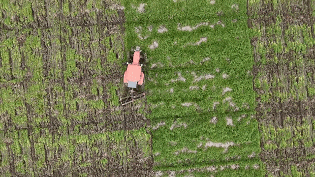 在庄行镇一片开阔的农田里,拖拉机正沿着笔直的路线来回穿梭,为土地“舒筋活络”。与过去农机手弯腰弓背、紧握方向盘不同,如今驾驶舱里的农机手更像一位“监管员”——只需在屏幕上轻点几下,设置好参数,农机便能沿着预设路线自主行驶,耕作精准高效。