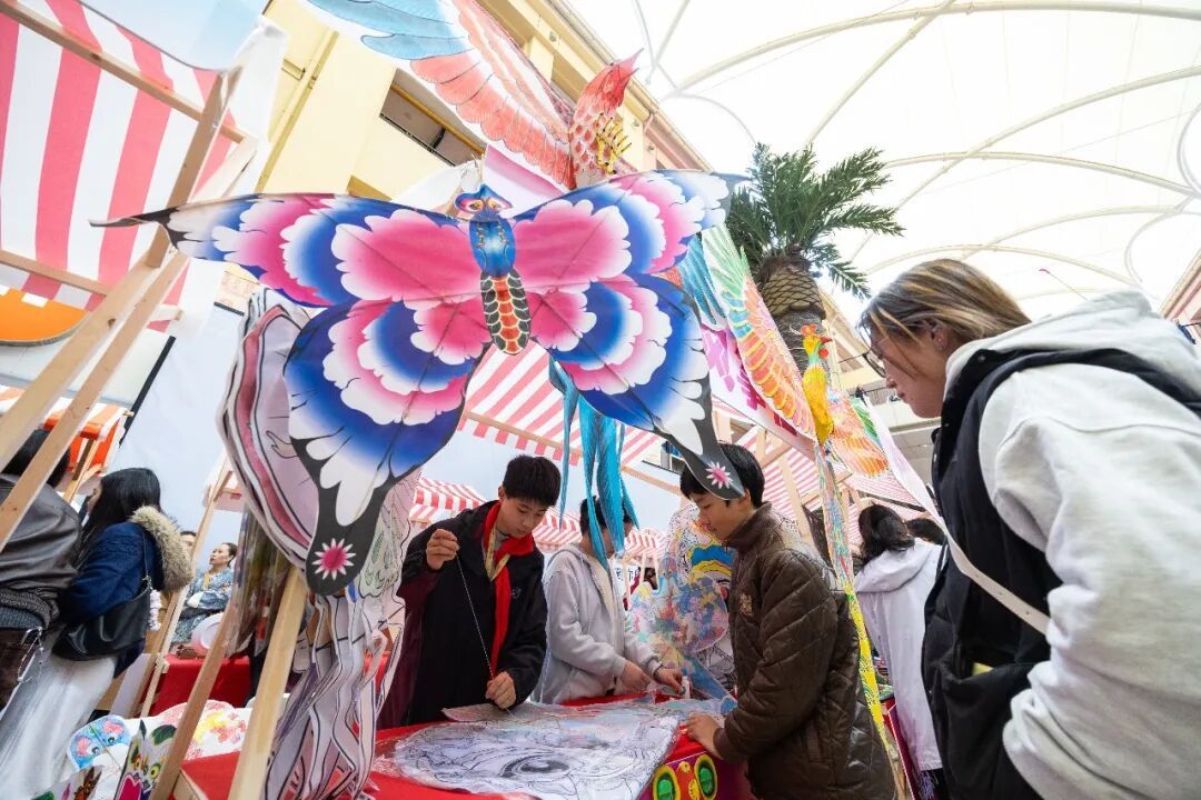 下午2时,广场中庭内各社团展位错落有致,在立信附校的柒韵国风展位前,传统手工艺品好看又好玩;上师大附外小的松江米语社团带来了大米手作,稻香四溢;三新东校的手作风筝社将五彩风筝悬挂在展位上方,成为现场一道亮丽的风景;三新思贤的聚贤墨坊、数字泥塑、创意制作等摊位同样人气满满。