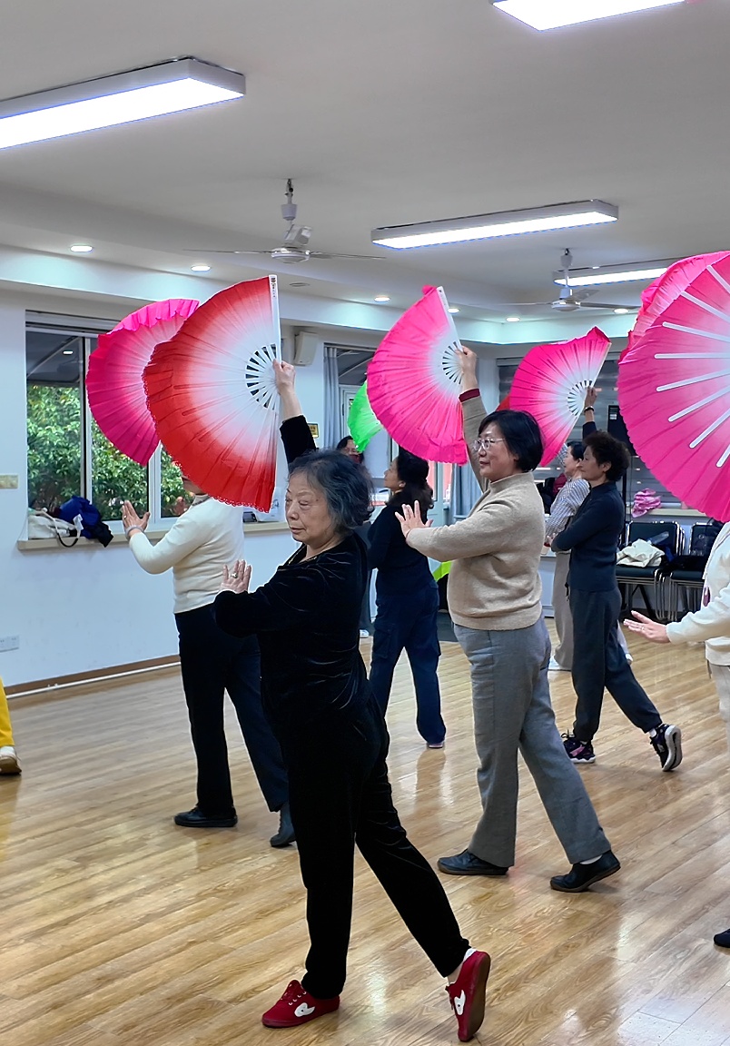 舞蹈修身板块的木兰扇课,是校园里的人气课程之一。课堂上,老师将传统扇艺与刚柔并济的武术招式相融合,兼顾康养性与观赏性。老年学员们身姿舒展,跟着老师的节奏挥扇、转身、迈步,扇面开合间,动作行云流水,既在动静之间舒展了筋骨、活动了身体,又在传统扇舞的韵味中涵养了气质,于优雅的律动中绽放出从容自在的银龄之美。一位刚刚结束木兰扇学习的学员对记者说:“我非常开心!可以学习到木兰扇、木兰拳的一些要领,强身健体、塑造身体形态的同时还可以结识很多朋友。”