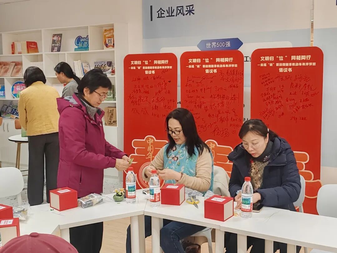 宣讲结束后,现场氛围从专注聆听转为温馨互动。街道侨眷代表、市老科协造船委创模中心会员张慈慧是一位“手作达人”,现场她带领大家开启了一场中式琉璃盆栽手作体验。