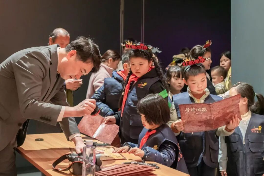 每一个板块都藏着最真实的历史。打卡寻迹地图,感受岁月温度,在实物细节里读懂革命故事。“你们愿意成为点燃星火的人吗?”举起巨型火炬,亲手点亮红色火种,以少年之名传递永不熄灭的精神之光!