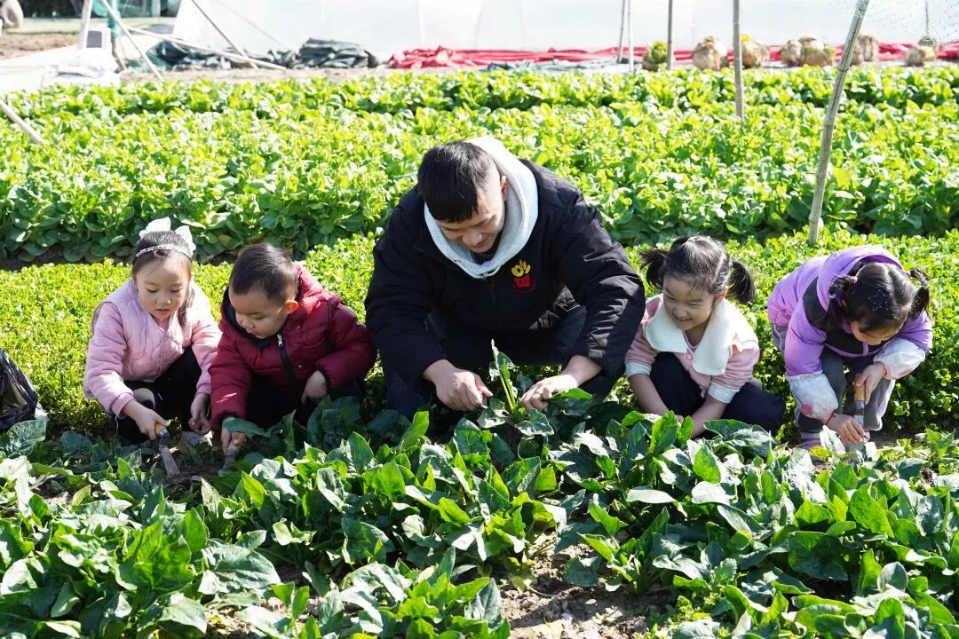 百合花幼儿园的地块里,土豆和大蒜苗整齐排列;小蜜蜂幼儿园的师生正忙着播种番茄、茄子和空心菜。“小农民们”在老师指导下除草、松土、播种、浇水,忙得不亦乐乎。