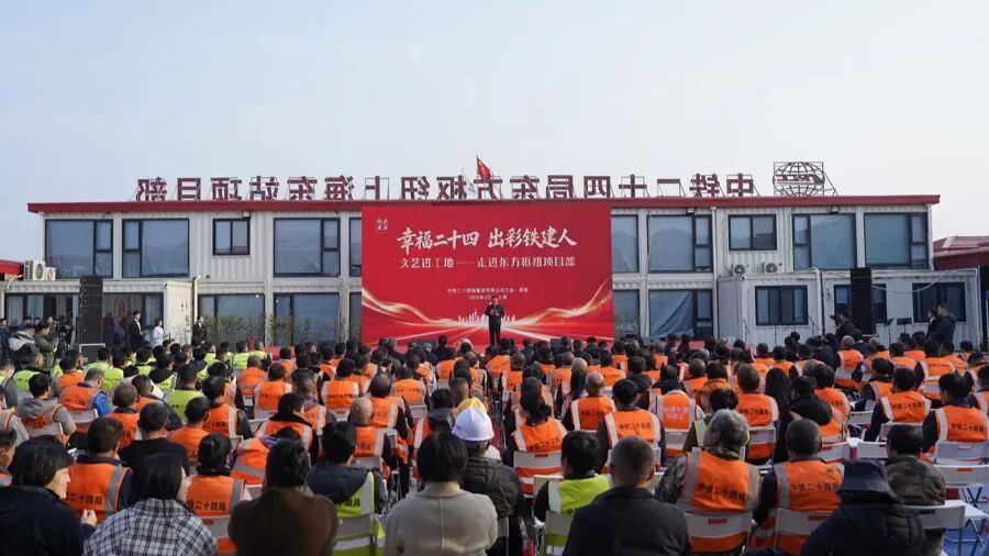 近日,“幸福二十四 出彩铁建人”文艺进工地活动,在东方枢纽上海东站项目部精彩上演。来自工程建设一线的300余名建设者齐聚一堂,共享这场由职工携手产业工人、监理、辖区派出所带来的文艺演出。