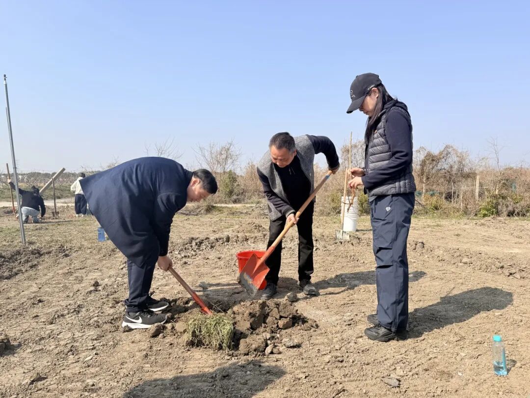 植树现场,高校党员师生、入党积极分子、学生干部与新镇村党员干部、村民代表相互结对、分工协作,大家挥锹挖坑、扶苗正身、培土压实、提水浇灌,每一道工序都认真细致、有条不紊。劳动间隙,师生们与村干部、村民热烈交流,在接地气、沾泥土、冒热气的实践中感受乡村变化。大家还为亲手栽种的桃树挂上专属树牌,写下初心寄语,让青春理想与红色初心在泥土中扎根、在阳光下拔节生长。