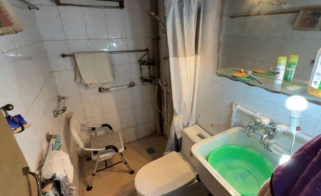 在卫生间,另一重风险也被化解。师傅在湿滑的瓷砖墙边安装了牢固的适老化扶手,并在淋浴区地面涂抹了防滑涂料。老人起身一握,脚下踩实,曾经“一地湿滑”的情况不复见。