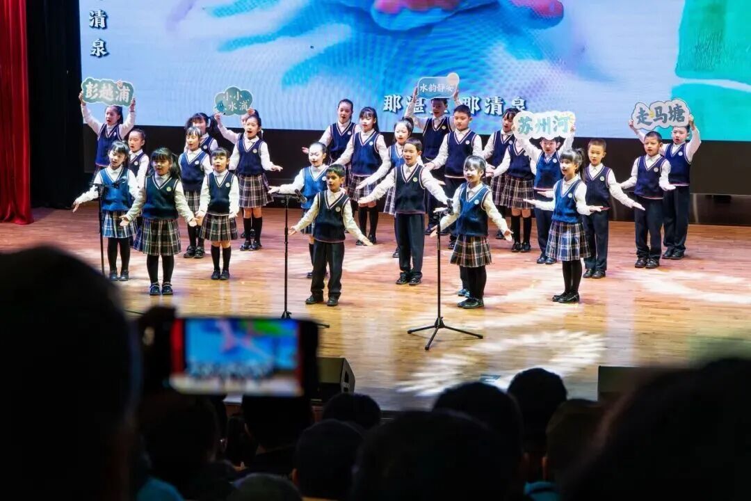 随后,大宁国际学校小学部合唱团带来童声合唱《节水护水 共织Σ》,孩子们用纯净的歌声表达了对水的美好向往,也寓意着“Σ生态绣带”将由一代代人共同编织。