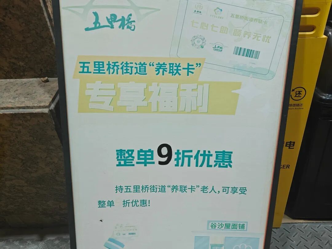 友情提醒:持有五里桥街道“养联卡”的老人来谷沙屋面铺用餐,可享受整单9折优惠哦。