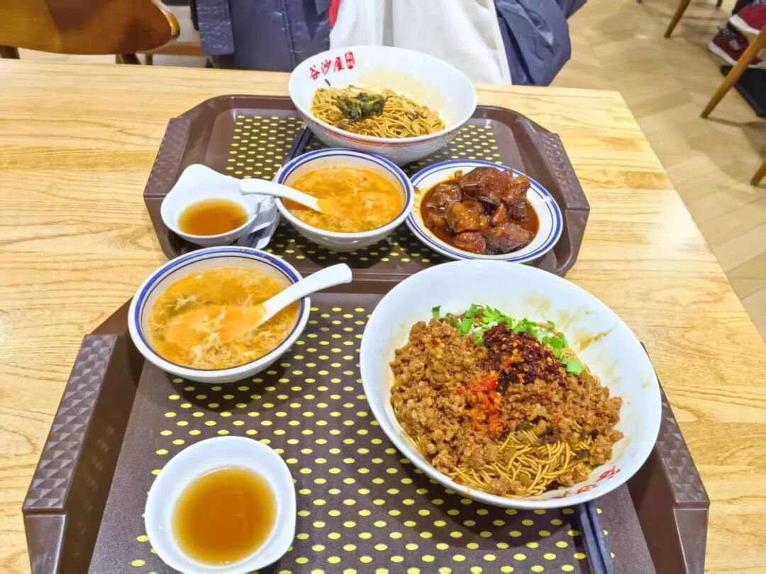 在店员们熟练而麻利的操作中,一碗热气腾腾的葱油拌面很快便呈现在眼前。面条上点缀着一簇干葱,卖相诱人。轻轻搅拌,葱油与浇头的香气瞬间弥漫开来,每一根面条都均匀地裹满了酱汁。夹起一筷子送入口中,面条筋道爽滑,葱香四溢,辣肉糜的醇厚滋味在口腔中绽放,让人回味无穷。