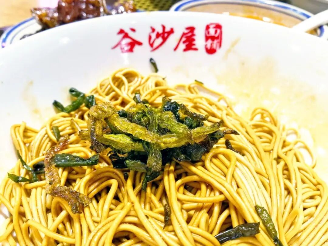 谷沙屋面铺的浇头是地道的本帮菜,浓油赤酱,偏甜口,每一口都是老上海的味道。许多食客专为狮子头而来——拳头大的肉圆,肉质鲜嫩、咸度适中。据店员介绍,午餐时间,备好的狮子头二三十分钟就能全部卖光。为了满足不同顾客的口味需求,面馆还自制了油泼辣子和小米椒辣酱两种辣椒酱,一香一辣,各具风味。加在面条里,辣而不燥,味道上更具层次感。