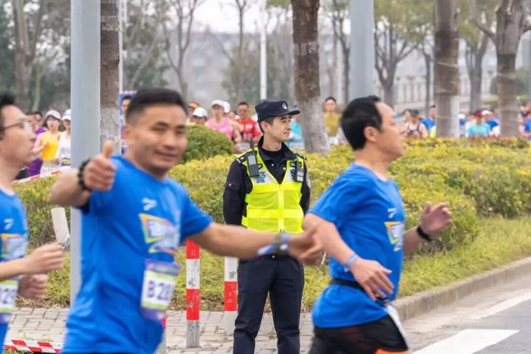 崇明公安交警与安保人员协同配合,对赛道沿线实施分时分段交通管制;赛事保障人员24小时值守,用行动诠释了“零风险”的承诺。你们是赛事的隐形铠甲,让每一位参与者都能安心奔跑。
