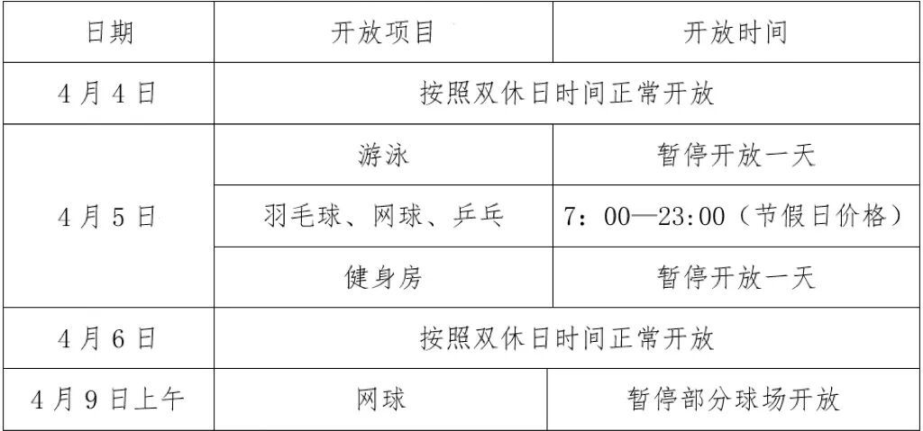 2026年清明假期及区初中毕业升学网球考试即将到来,为兼顾广大市民健身需求,我中心枫林校区对清明节日及考试日的开放时间调整如下:
