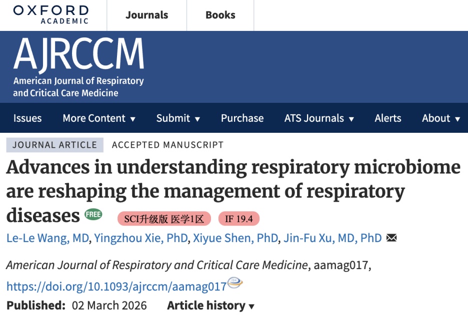 近日,同济大学附属同济医院徐金富教授团队受邀在国际学术期刊American Journal of Respiratory and Critical Care Medicine发表论文,对呼吸道微生物组领域的最新研究进展进行了系统梳理,强调呼吸道微生物组、耐药基因组以及微生物互作网络与疾病进展、治疗反应以及地理差异密切相关。深入理解这一复杂性,对于制定基于微生物组的诊疗策略、优化抗菌药物使用以及推动呼吸医学的发展具有重要意义。