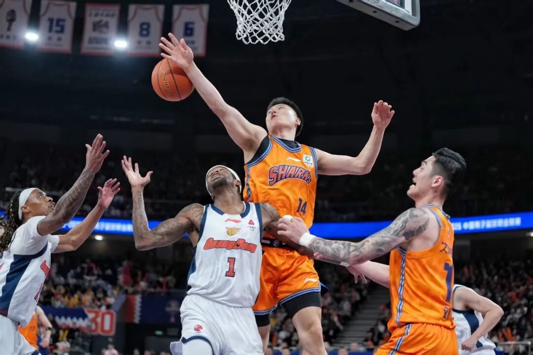 第二节两队形成相持,比分交替上升,上半场大鲨鱼以51比41领先,张镇麟、古德温和怀特塞德三人得分上双。