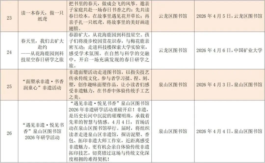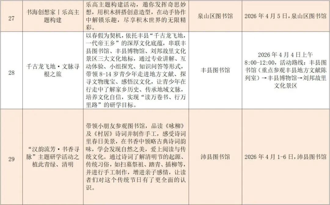 “乡野拾趣——春日农事与田园牧歌”线路将课堂搬进田园。铜山田源溪语宁静舒适,蛙·两季清新自然,果果部落生机勃勃;贾汪龙吟湖·趣喵岛妙趣横生,潘安水镇古韵悠长,茱萸欢乐谷适合全家出游。新沂马陵山满目青翠,窑湾古镇古朴温柔;经开区正本农场可体验农耕采摘;睢宁鲤鱼山庄安静祥和,松鼠咔咔乐园童趣盎然;邳州艾山自然人文相融,古栗园千年栗树吐新绿;丰县百年梨园花开如雪,瑶盛文化园清幽雅致;沛县昭阳庄园波光粼粼,尽享田园水乡惬意。