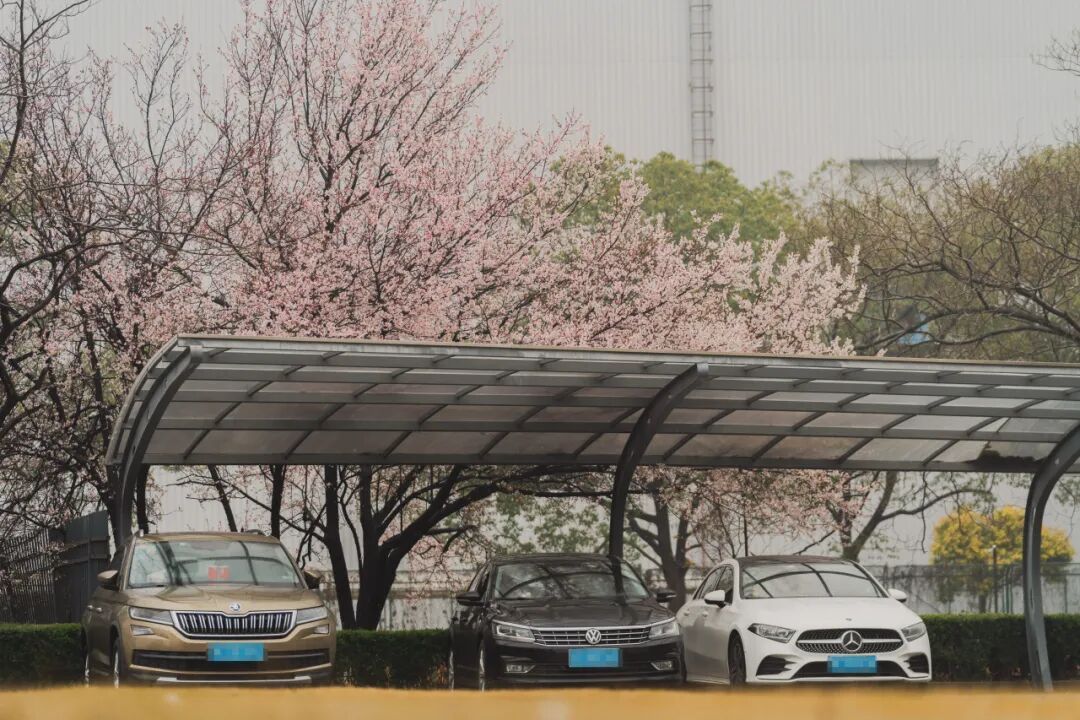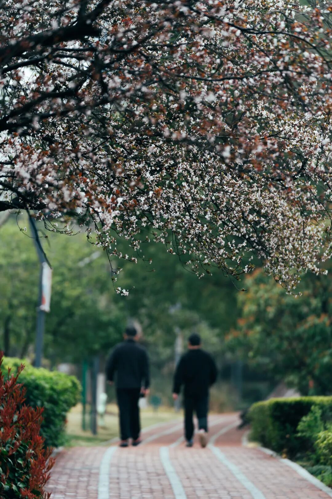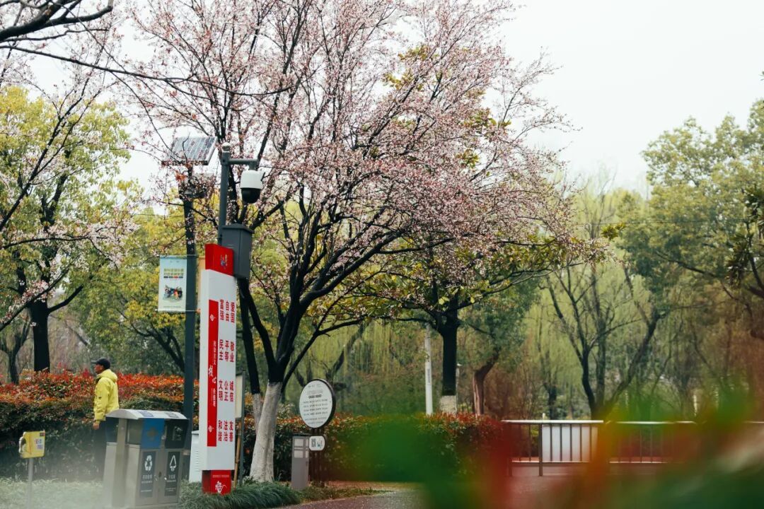 漫步沁园湖绿地广场,这里更是香花桥春日的颜值担当。三月下旬,紫叶李迎来盛花期,层层叠叠的花瓣缀满枝头,微风拂过,落英缤纷,铺就浪漫花径。阳光透过花瓣洒下细碎光影,目之所及皆是美好。而枝头的樱花花苞已鼓鼓囊囊,蓄势待发,仿佛下一秒便要挣脱枝桠束缚,将一冬的积蓄化作满树绚烂,静待一场盛大的绽放。