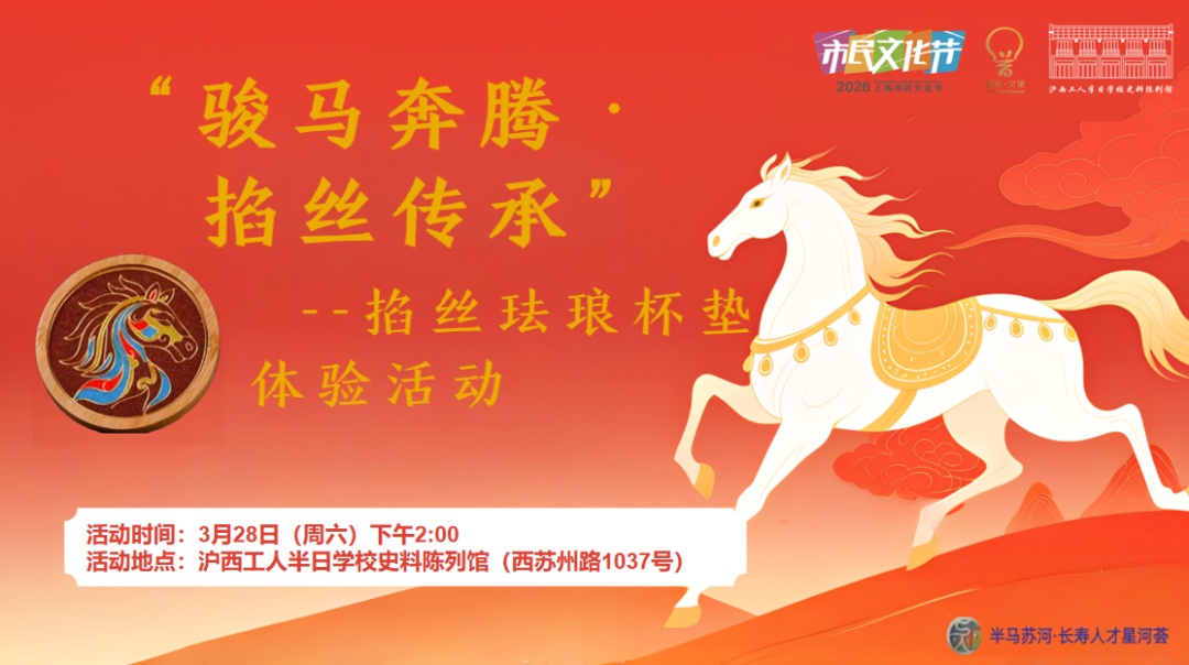 这个春天,让城市记忆“活”起来! 值此2026上海市民文化节“城市美育日”,顾正红纪念馆、沪西工人半日学校史料陈列馆及苏州河工业文明展示馆联动推出系列沉浸式体验活动,带你从“看展览”走向“玩互动”,在非遗手作、老物分享、红色闯关中,感受有温度、有故事的文旅新体验!