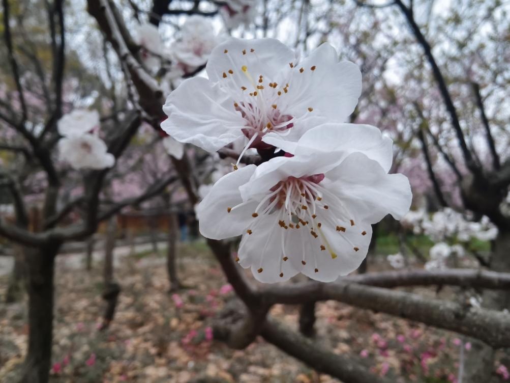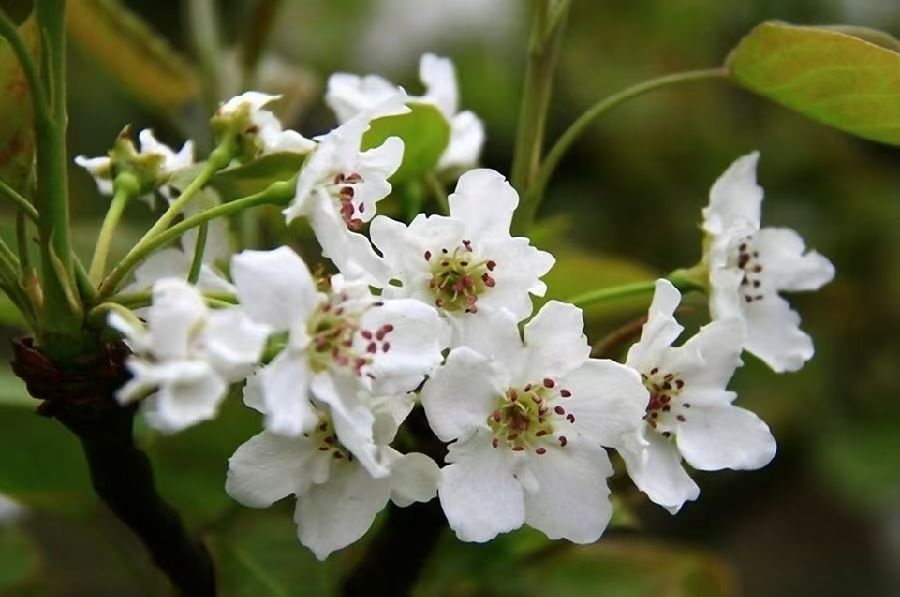 花梗极短贴枝生,花瓣顶端无缺口,花叶同放多粉色。 花梗较长成簇开,花瓣顶端有缺口(重要特征),先花后叶有秩序。 花开贴枝几无梗,花瓣圆润无缺口,花开无叶花后叶(重要特征)。 白色浪漫 梨、杏、李,一眼认出你