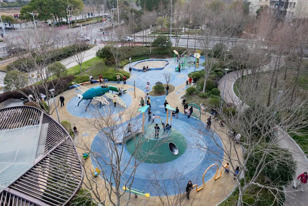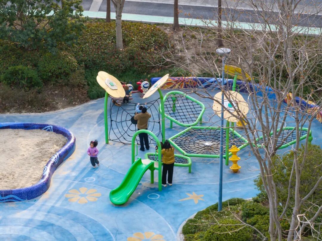 这里还有跑酷式攀爬滑梯组合,三层滑梯搭配防护网,安全又有趣,能让孩子在玩乐中锻炼体能,带娃的家长可以重点冲!公园还设有各类健身设施,方便老人们舒展筋骨、强身健体,在春光里挥洒汗水,解锁踏春新方式。逛累了找个树荫下小憩,感受微风拂面,简直不要太舒服。