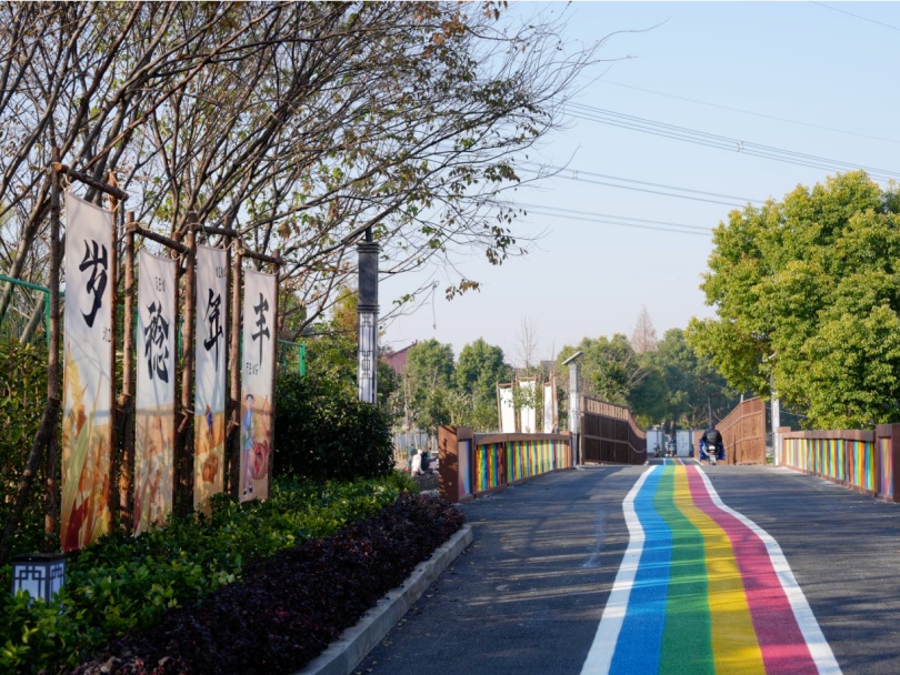 彩虹步道、二十四节气竹扁画、农耕彩绘交融