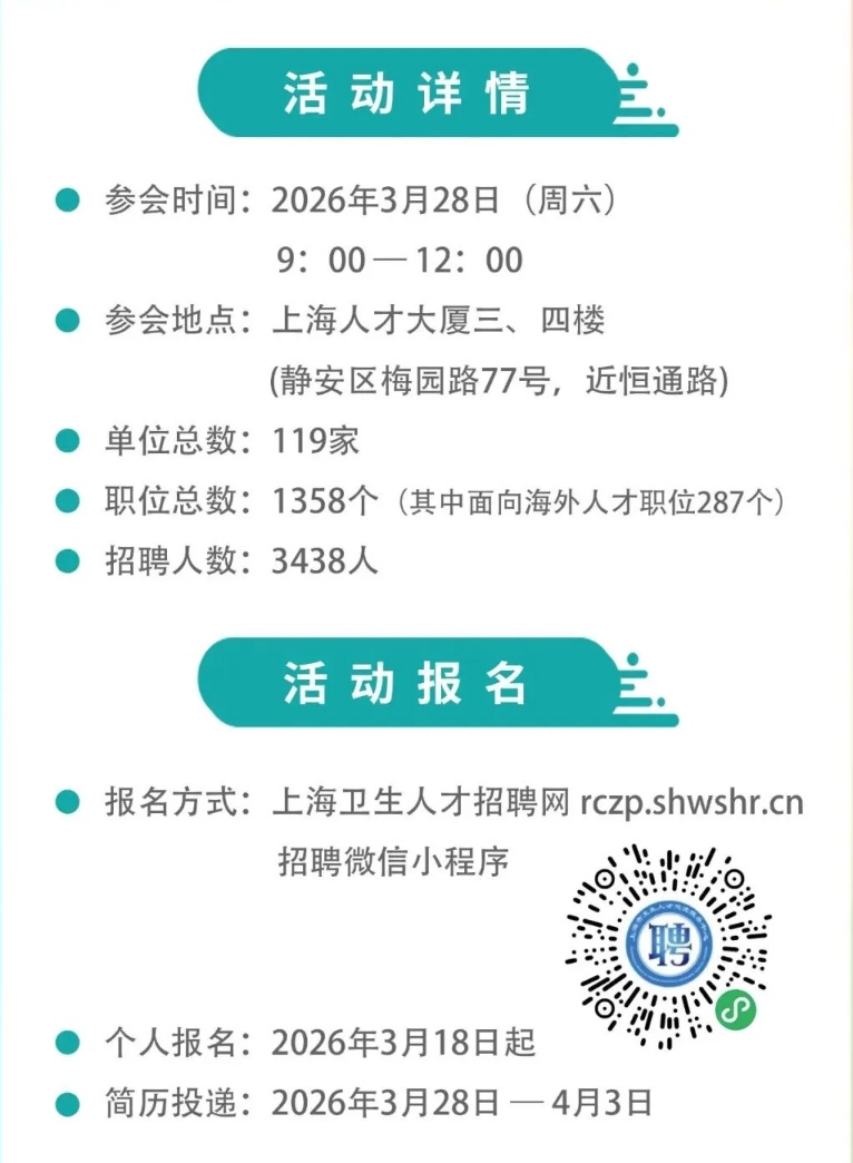 开始报名!2026上海卫生人才春季招聘会本周六举办