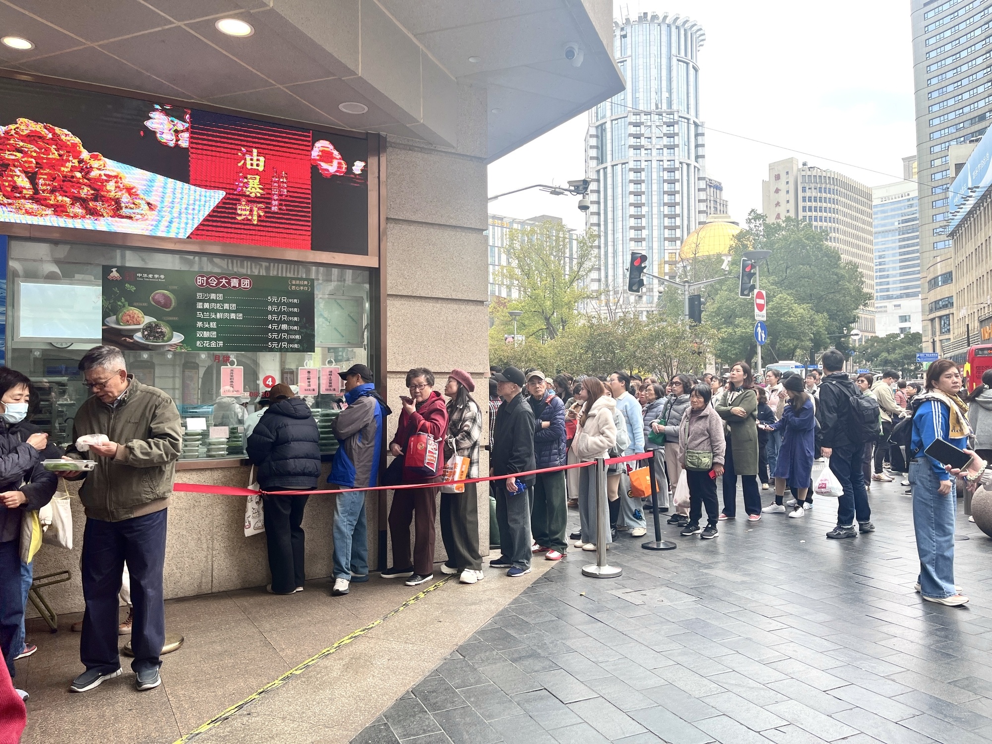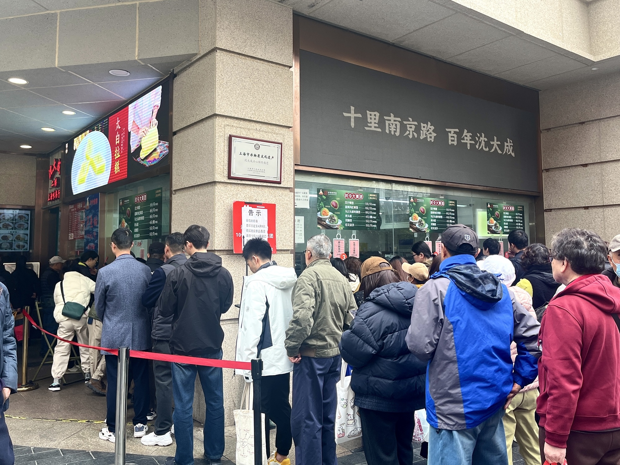 近期,记者再次路过沈大成时,发现队伍数量又增加了!记者从沈大成处获悉,为在青团季进一步缩短消费者排队时间,商家将原本的7个窗口增加至11个,再次缩短了消费者排队时间,也在高峰时出现了一家店有11条队伍的“空前盛况”。