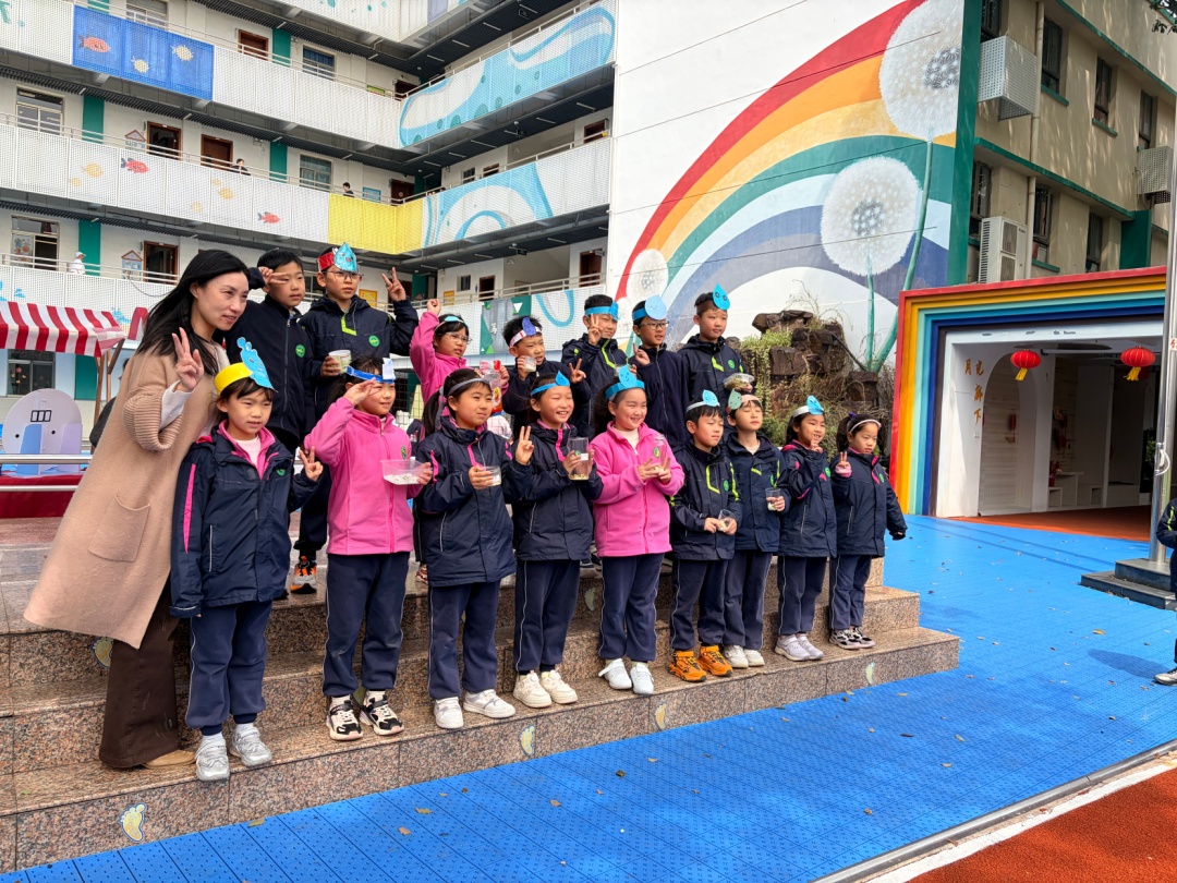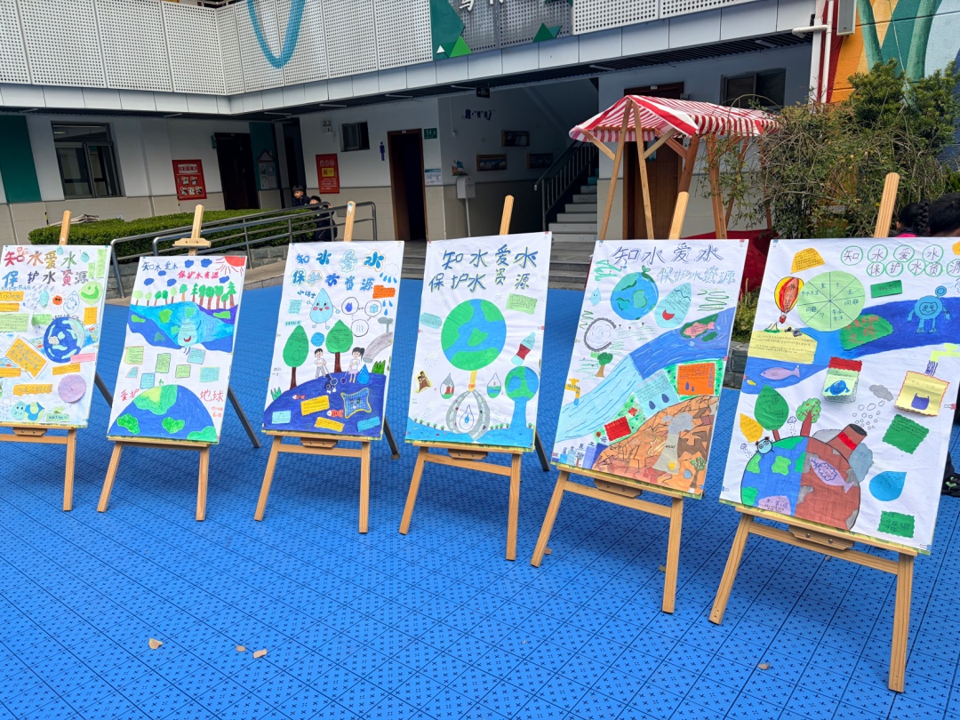 今年华坪小学一年一度的“世界水日”活动以“知水、爱水、节约水资源”为主题,当天学校内气氛热烈,孩子们头上戴着自己亲手制作的水滴头饰穿梭在教学楼前蓝色小广场上的展位间,像极了一场以水为主题的游园会。