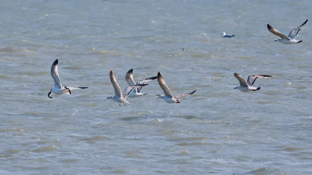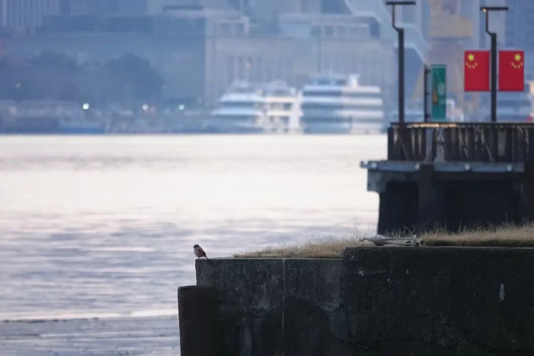 杨浦滨江,江鸥在互相追逐(王寅唯)