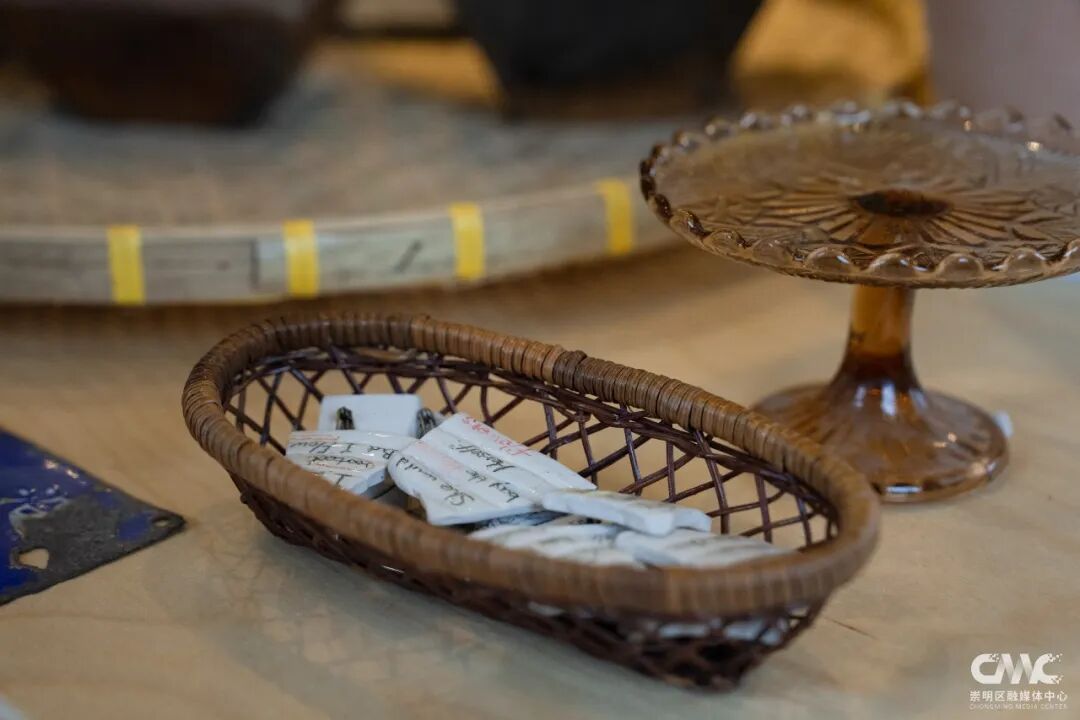 除了丰富的体验,“自在地”还随处可见创意与环保的巧思。空间内展示着多幅以崇明田园风格为灵感的画作,以及由闲置老物件改造而成的手工艺品:素麻布料变身文艺杯垫,既美观又实用;废旧瓷片经过艺术加工,成为独一无二的手机支架。