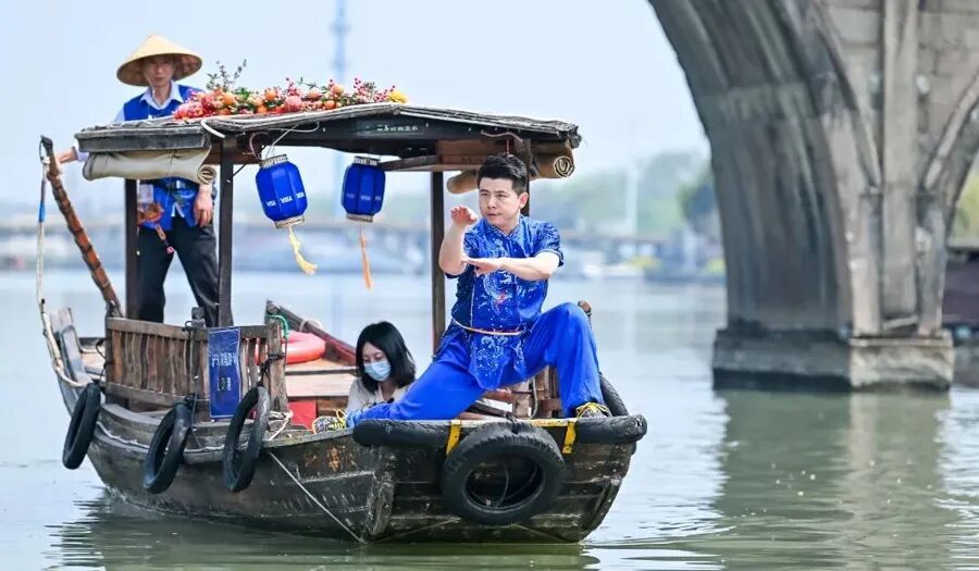 朱家角古镇景区的非遗船拳表演