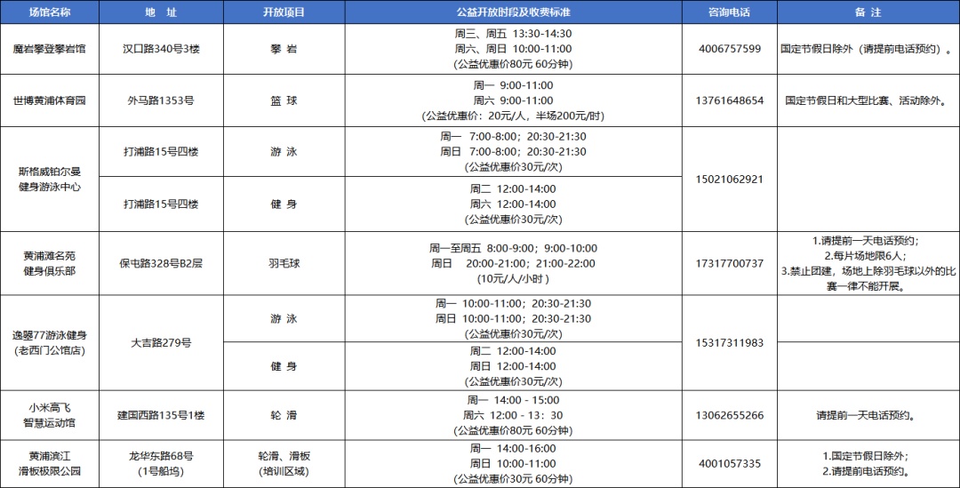 3.因各场馆功能与服务对象不同,部分健身场所开放时间可能会有调整,以场所现场公示为准;