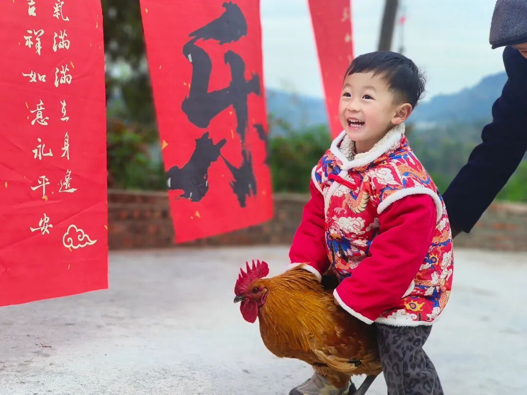 作者说:过年的仪式感,从院角这只神气的大公鸡开始。红袄裹身的弟弟,把它当成了最威风的“骏马”,笑得眉眼弯弯,乐不可支。他还不知这是年夜饭桌上最鲜美的一道菜肴,只顾攥着鸡毛嬉闹。这鲜活的嬉闹与即将升腾的烟火气交织,便是年最温暖的底色。(三新思贤八5班 赵润哲)