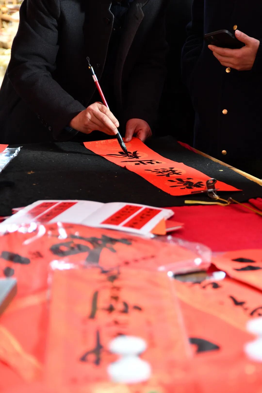 作者说:除夕日晌午,漫步于西安市碑林区的老街。旁边一处屋檐下人群簇拥,走近看,木桌上叠满红色宣纸,人们争先恐后地把手中久久揣摩的新年辞句交由一位古稀老人书写。他挥毫泼墨,在承载无数次“迎春”的愿望时,一道春光撒了下来。(松江二中高一9班 沈裕森)