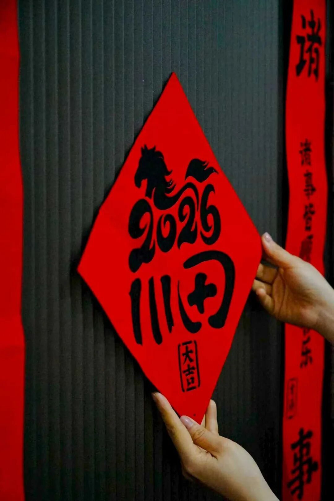 作者说:2026年除夕夜,厦门家中。灯火可亲,我与家人合力贴上这枚融入马年元素的“福”字。指尖抚平红纸的瞬间,传递的是无声的爱与默契。这看似寻常的仪式,承载着中华年俗的厚重温情,便是我眼中胜过繁华的最美年味。(松教院附校八1班 陈禹东)