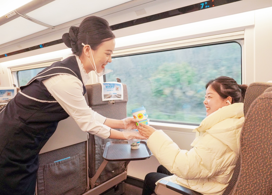 春意渐浓,长三角铁路春游客流持续攀升。近日,中国铁路上海局集团有限公司华铁旅服公司为提升旅客出行体验,对动车组“一碗好饭”餐饮服务进行了春季焕新升级。时令春菜、传统青团、网红茶饮集中亮相,中欧班列进口国潮伴手礼及多款网红饮品同步上车,为旅客打造“舌尖上的春天”。