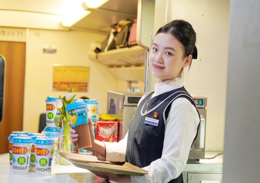 为满足旅客对多样化饮品的需求,该公司首次引进新式茶饮品牌,推出栀子云芽奶茶、黑糖珍珠奶茶两款暖心热饮,以及鸭屎香柠檬茶一款清爽冷饮,冷热搭配适和春季多变的天气。列车餐饮领班将根据客流数据动态调整备货,确保线路供应充足。与此同时,两款网红甜品饮料杨枝甘露、青提茉莉同步上车,以高颜值包装和清爽口感成为旅客旅途补水解乏的热门选择。