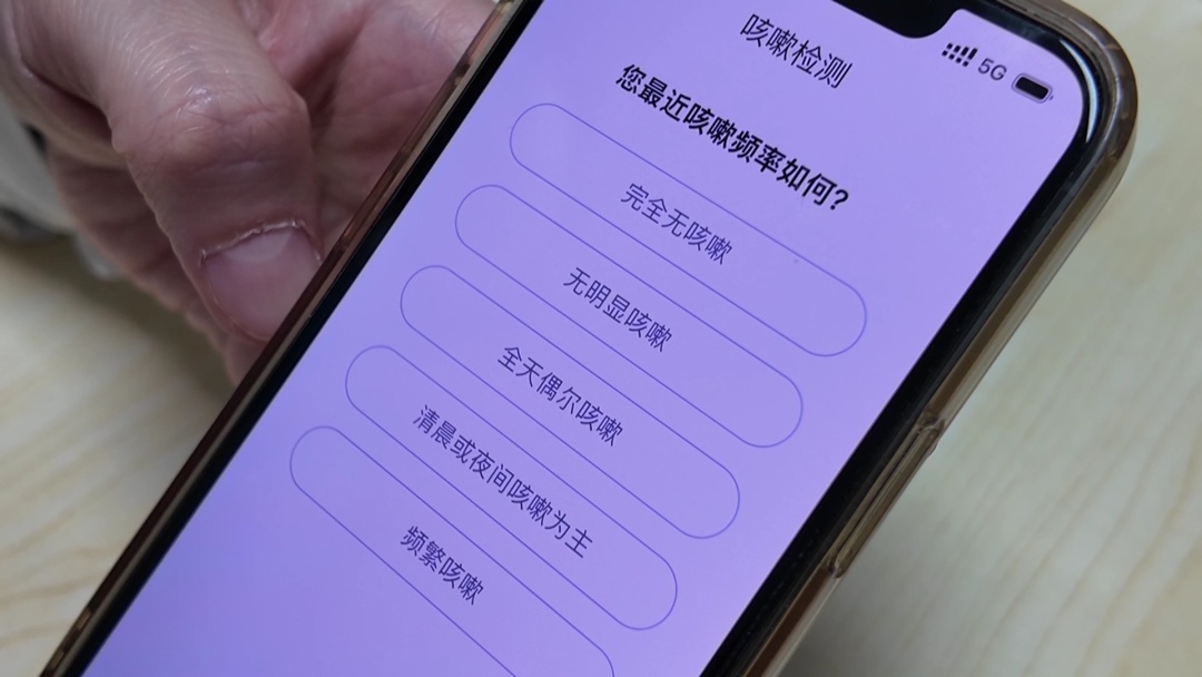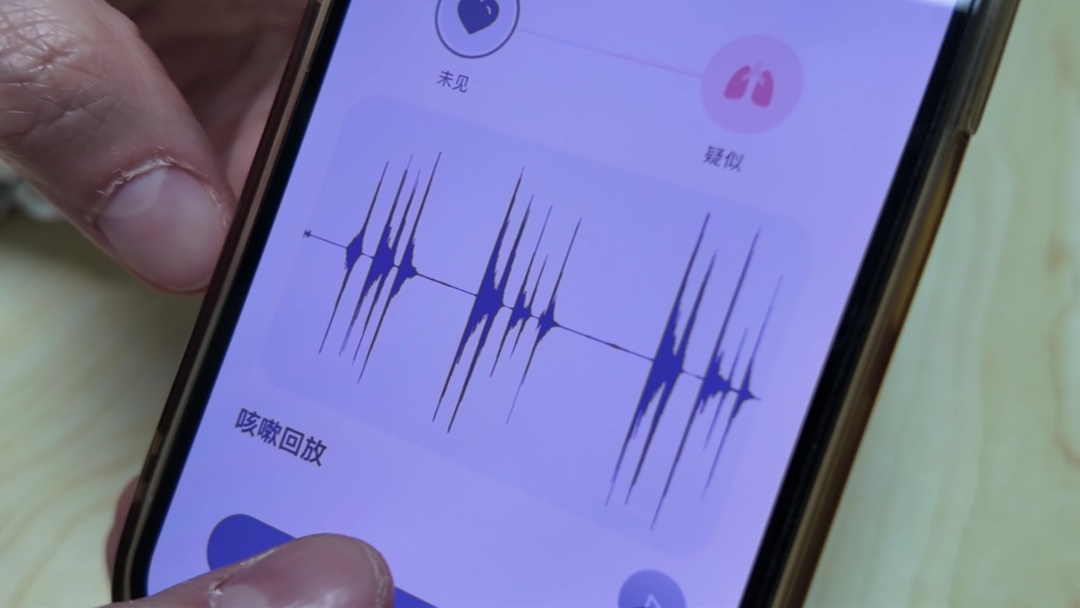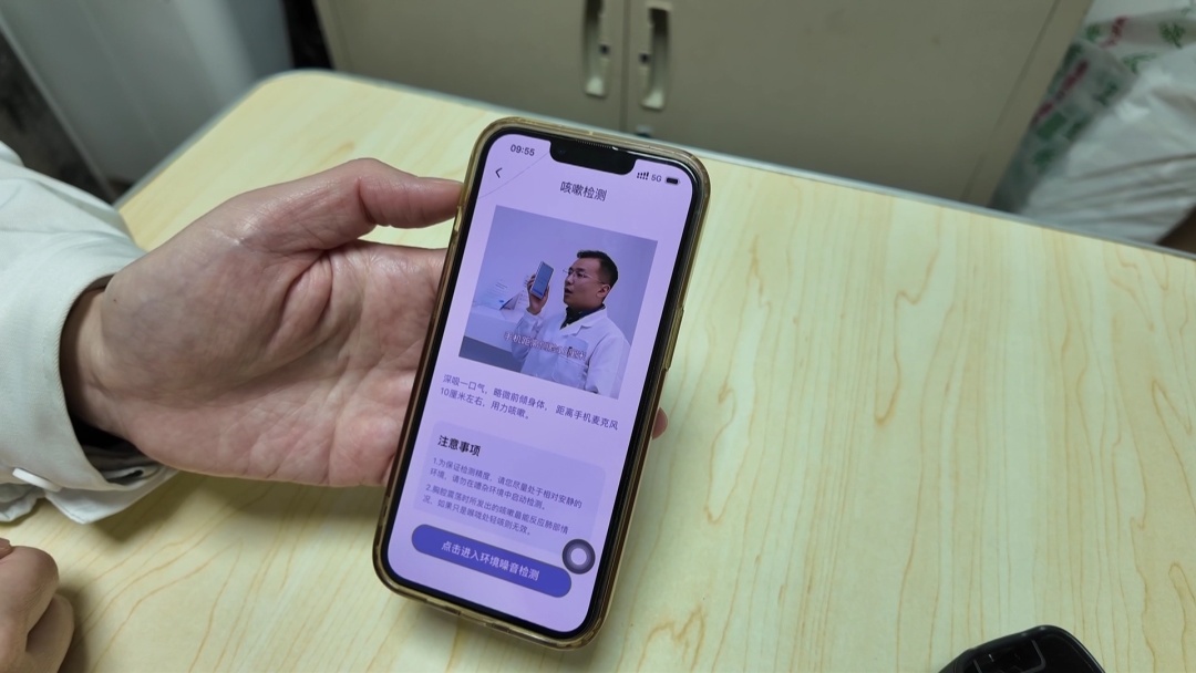 在社区卫生服务中心,记者见证了这一新技术的便捷筛查过程。现场工作人员提醒:“环境符合要求了,我们要准备开始进行咳嗽测试。手机距离侧脸10厘米,深吸一口气,从肺部发力咳嗽,3-7次咳嗽可停止。”整个筛查过程十分简便,只需一部手机,在安静环境中主动咳嗽3-5次,再回答几个小问题,AI就能初步评估慢阻肺患病风险。