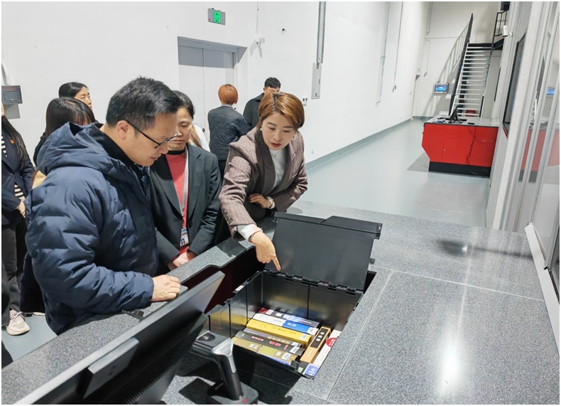 调研期间,中心一行重点参观了科技数字仓及AI档案智能应用展示区域,详细了解档案存储环境、智能管理系统、安全防护设施以及档案整理、保管、调取、流转等全流程作业情况,认真听取了数字仓在规范化运营、集约化管理、安全化保障等方面的经验介绍。双方还聚焦人工智能技术在档案管理中的实际应用进行了热烈讨论。大家一致认为,随着数字化时代加速演进,档案工作正面临新的机遇与挑战,加快推动档案数字化转型、促进AI智能技术深度应用已成为提升档案管理水平、实现档案工作高质量发展的必由之路。