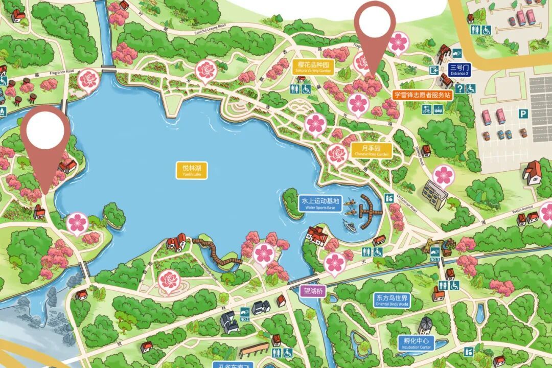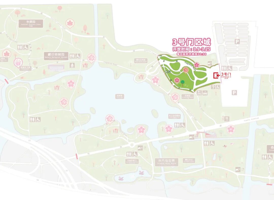 二号门:早樱林、栖杉路
