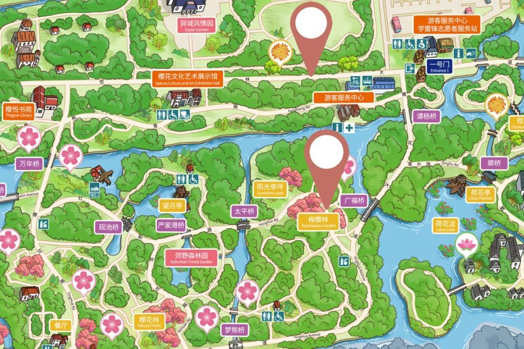 一号门:悦林大道、梅樱林