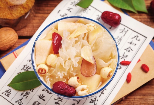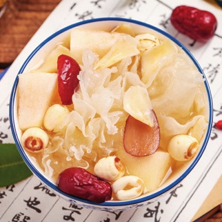 银耳和百合在食疗中长期被用作滋阴润肺、养颜的材料。银耳富含多糖,质地胶润,能润肺生津并对胃肠黏膜有保护作用 ;百合有清心安神的辅助作用,适合兼有失眠或心烦者。