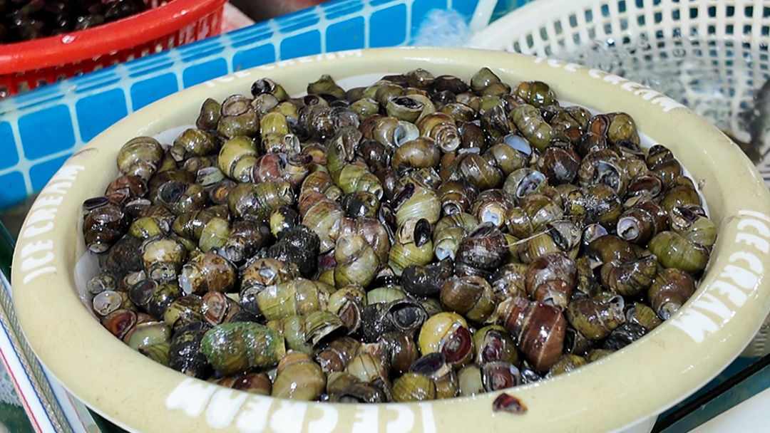 摊主将已修剪好的螺蛳
