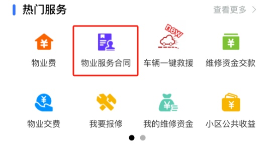 业主可通过小程序首页点击“物业服务合同”即可查看小区服务合同条款内的所有内容,2023年6月后签订的合同还支持关键词搜索。