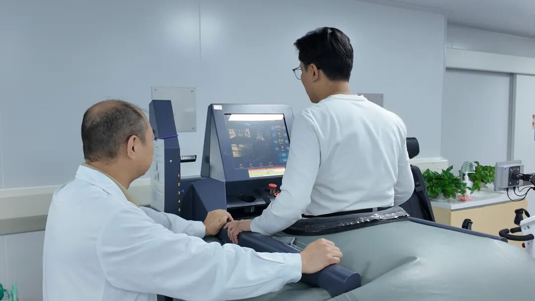 针对邵先生的情况,医生推荐了康复科特色反重力跑台训练。该设备能够有效减轻下肢关节压力,在不加重损伤的基础上,帮助跑者维持跑步节奏和运动状态,兼顾赛前备赛与损伤防护,实现科学调整、安全备战。