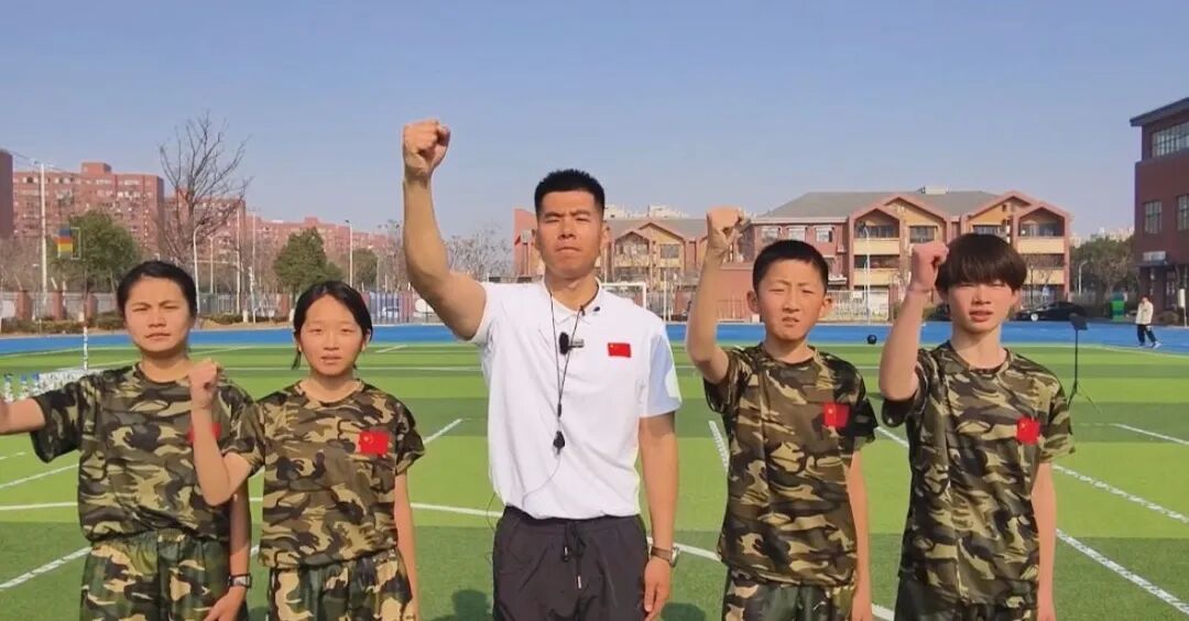 “大家有没有信心战胜敌人、保家卫国?”“有!有!有!”响亮的回应声中,上海政法学院附属松江外国语学校(以下简称“上政松外”)操场上,一堂体育课迅速“升温”。大屏幕上,抗日战争历史影像与训练画面依次播放;场地上,学生在教师口令指挥下快速集结,投入“精准空袭”“战术规避”“极速追击”等任务挑战。