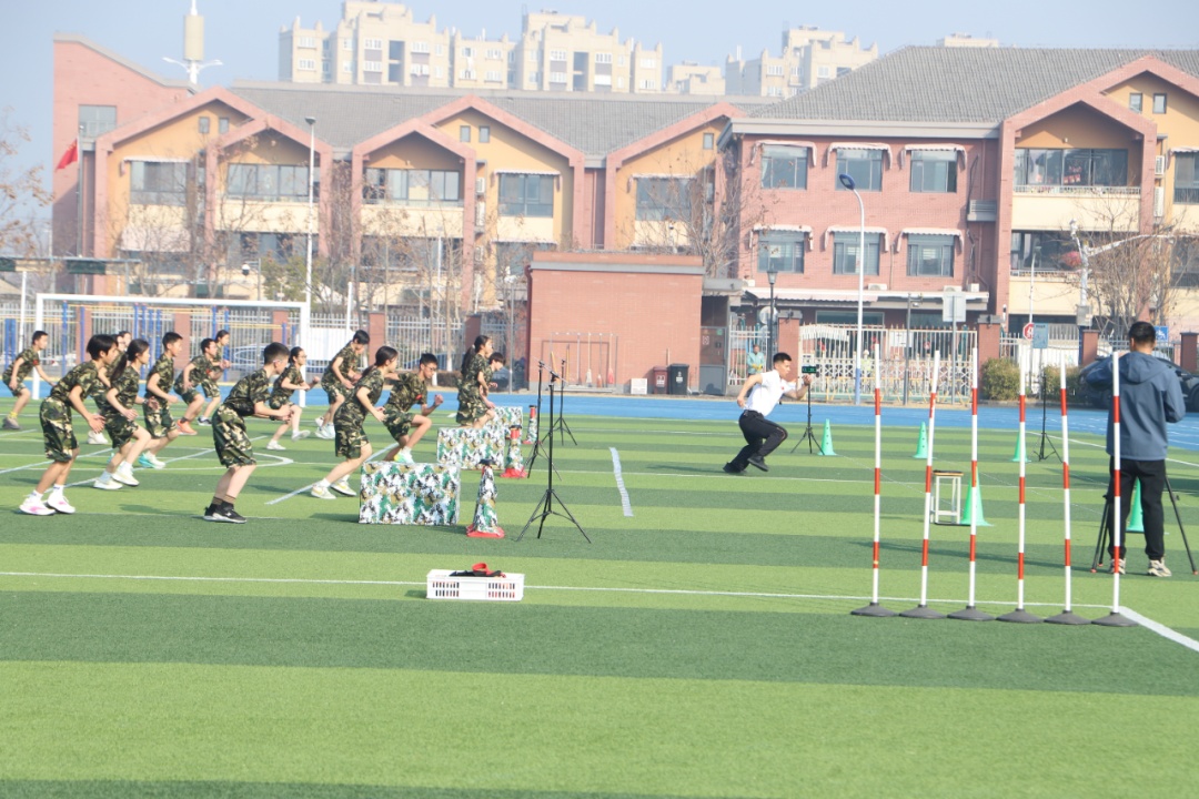 这种转化,在“国防体能训练营”这样的主题课程里体现得尤为集中。“特种兵”并不是一个简单的情境标签:翻越跳箱对应“跨越障碍”,团队搬运对应“物资输送”,听信号变向跑对应“战术反应”。学生在完成这些任务时,练的不只是速度、力量和敏捷,也在一次次服从指令、分工协作和迎难而上中,具体感受纪律、责任和集体意识。